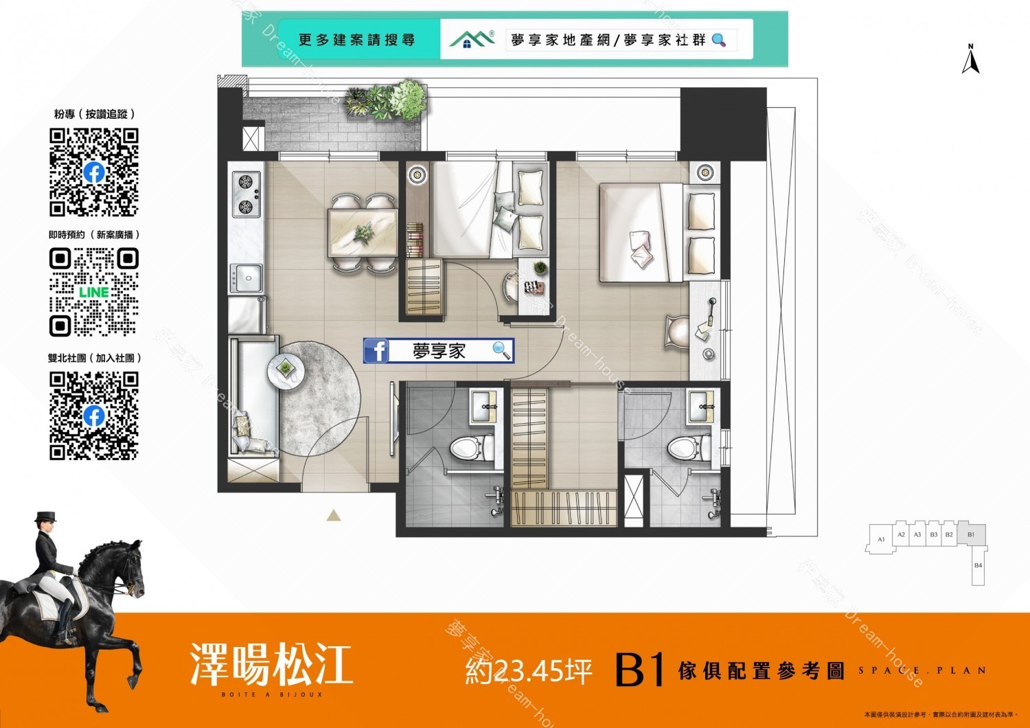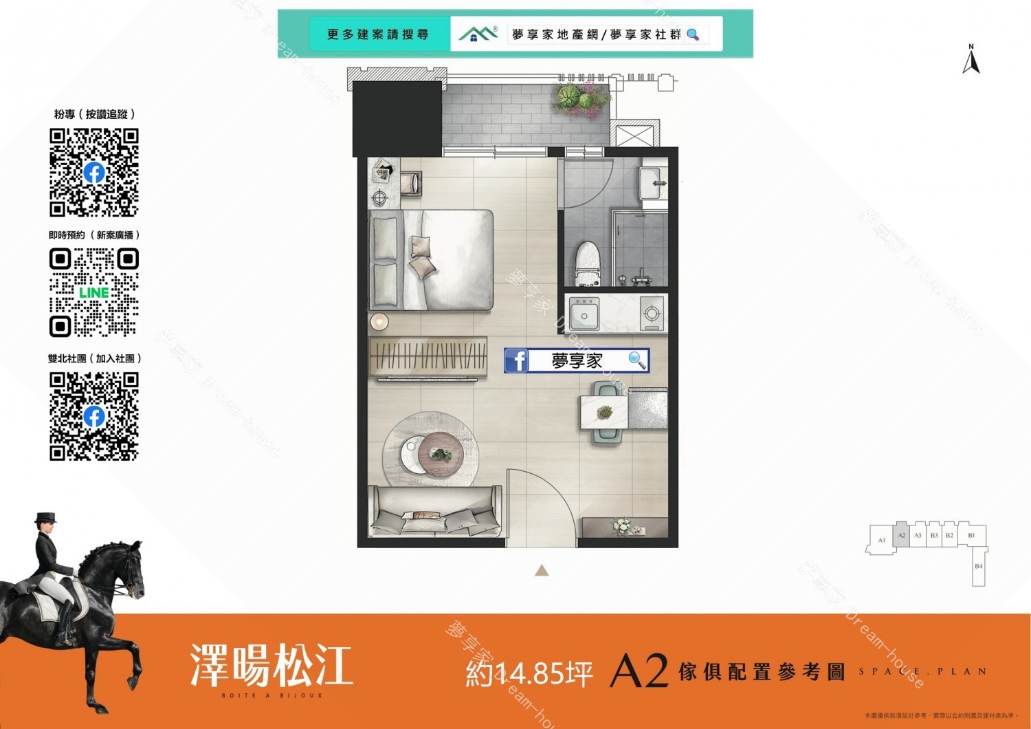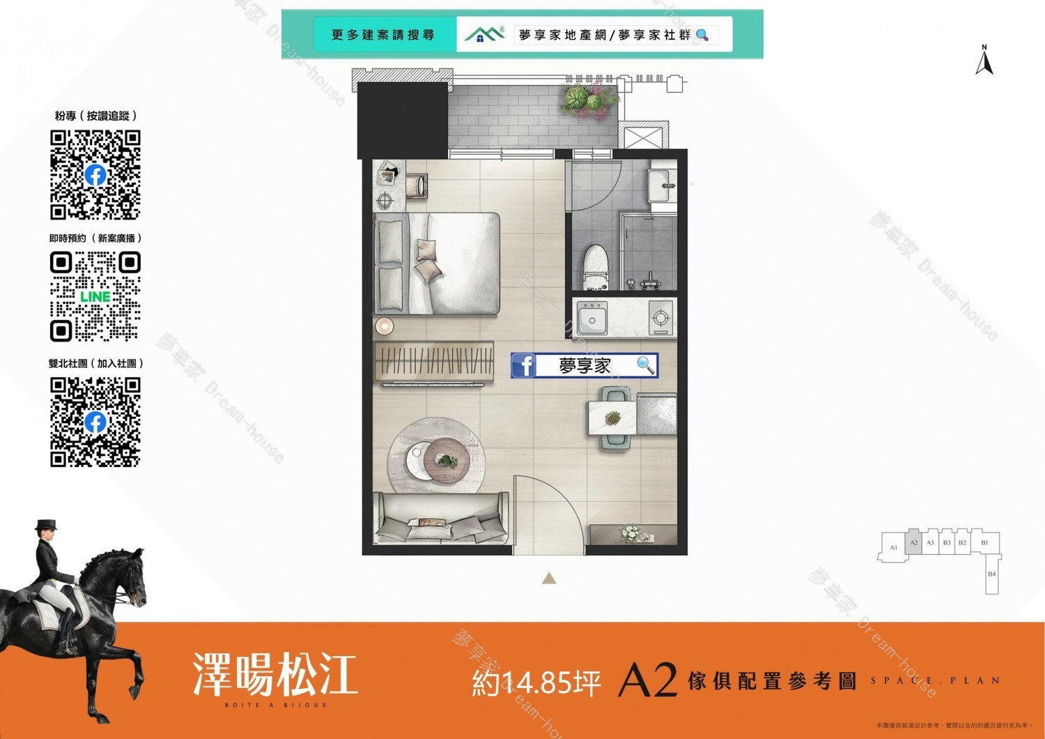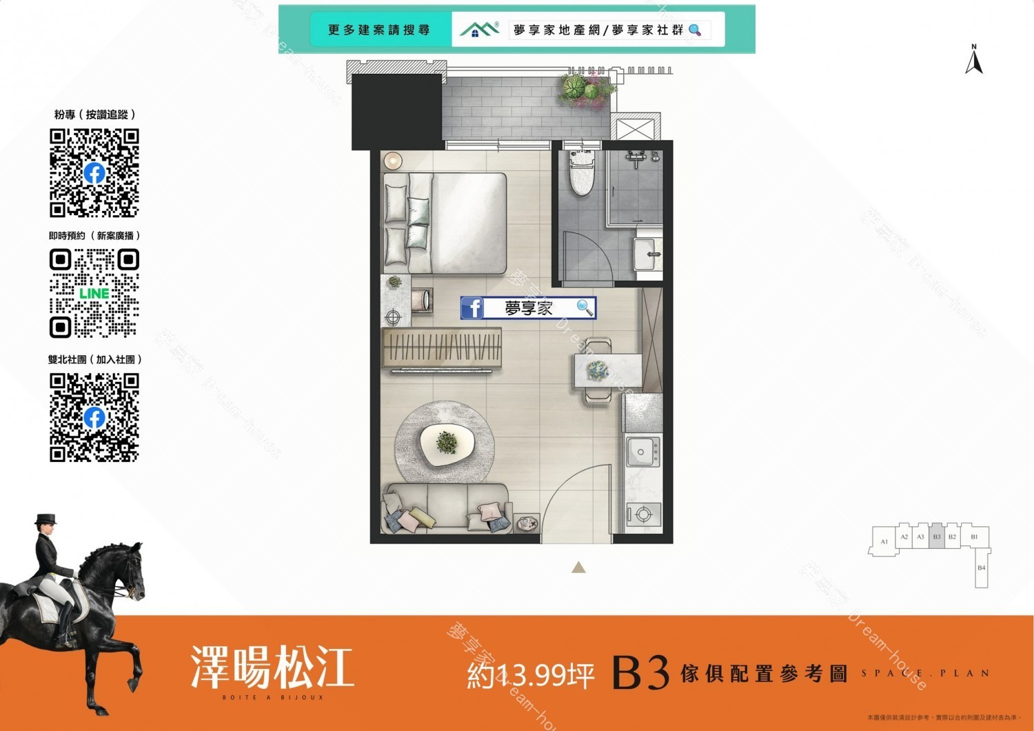 • 格局/坪數 約1房13~14坪 , 2房19~23坪 , 3房27坪