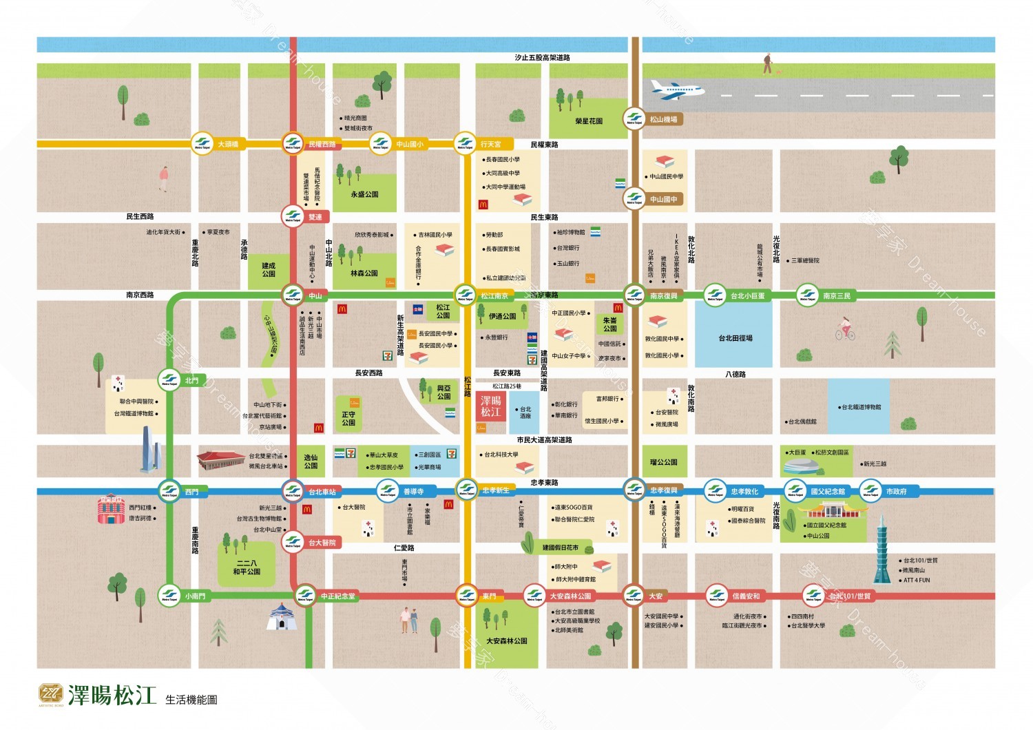 - 捷運/輕軌 忠孝新生站、松江南京站