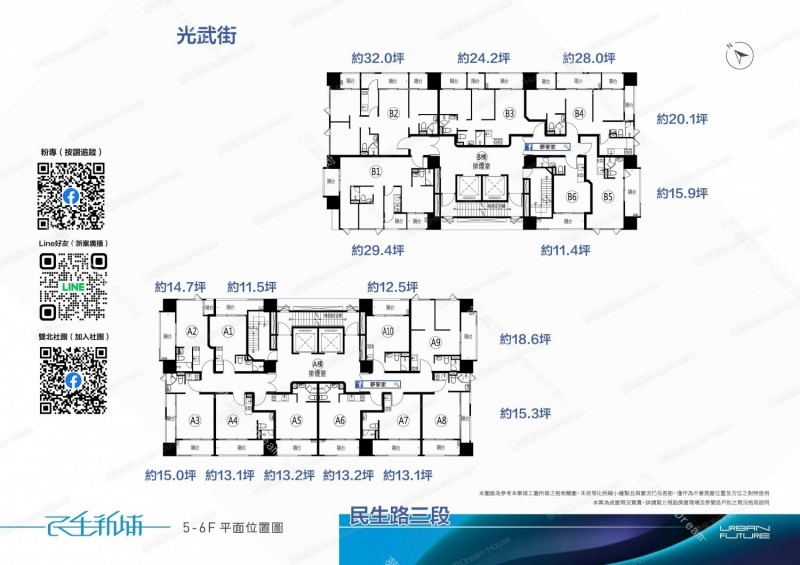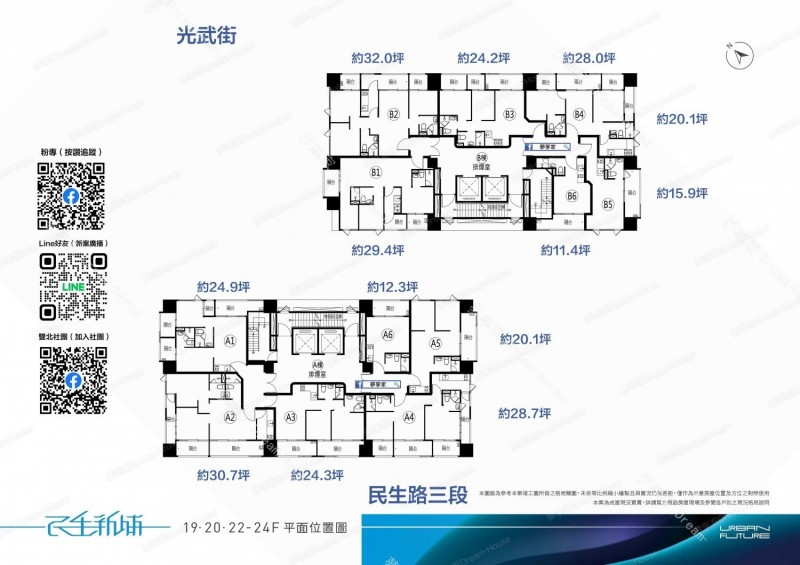 - 格局/坪數 約1房12~15坪 , 2房18~28坪 , 3房30~32坪