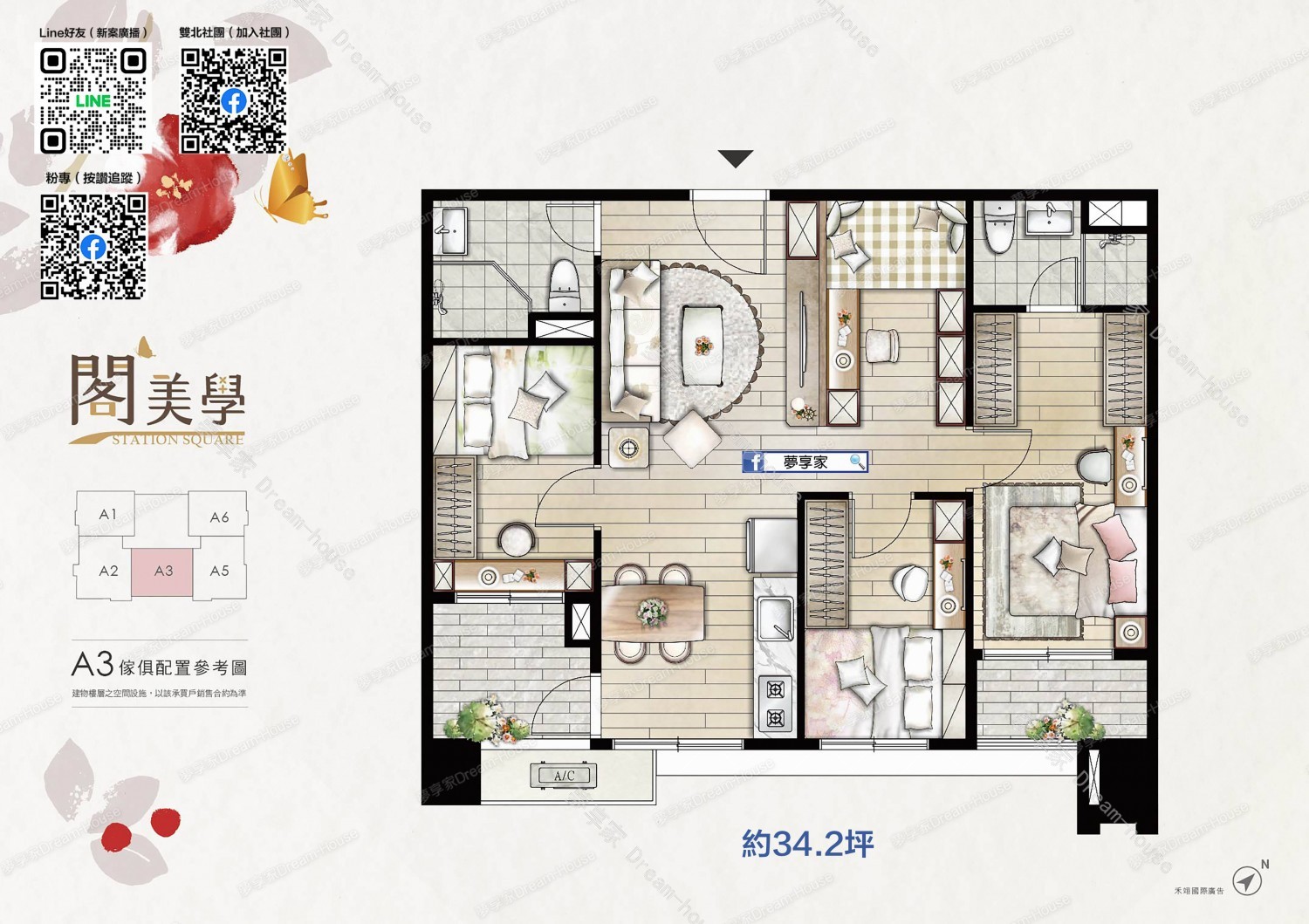 - 格局規劃 約2房30坪 , 3房34~38坪