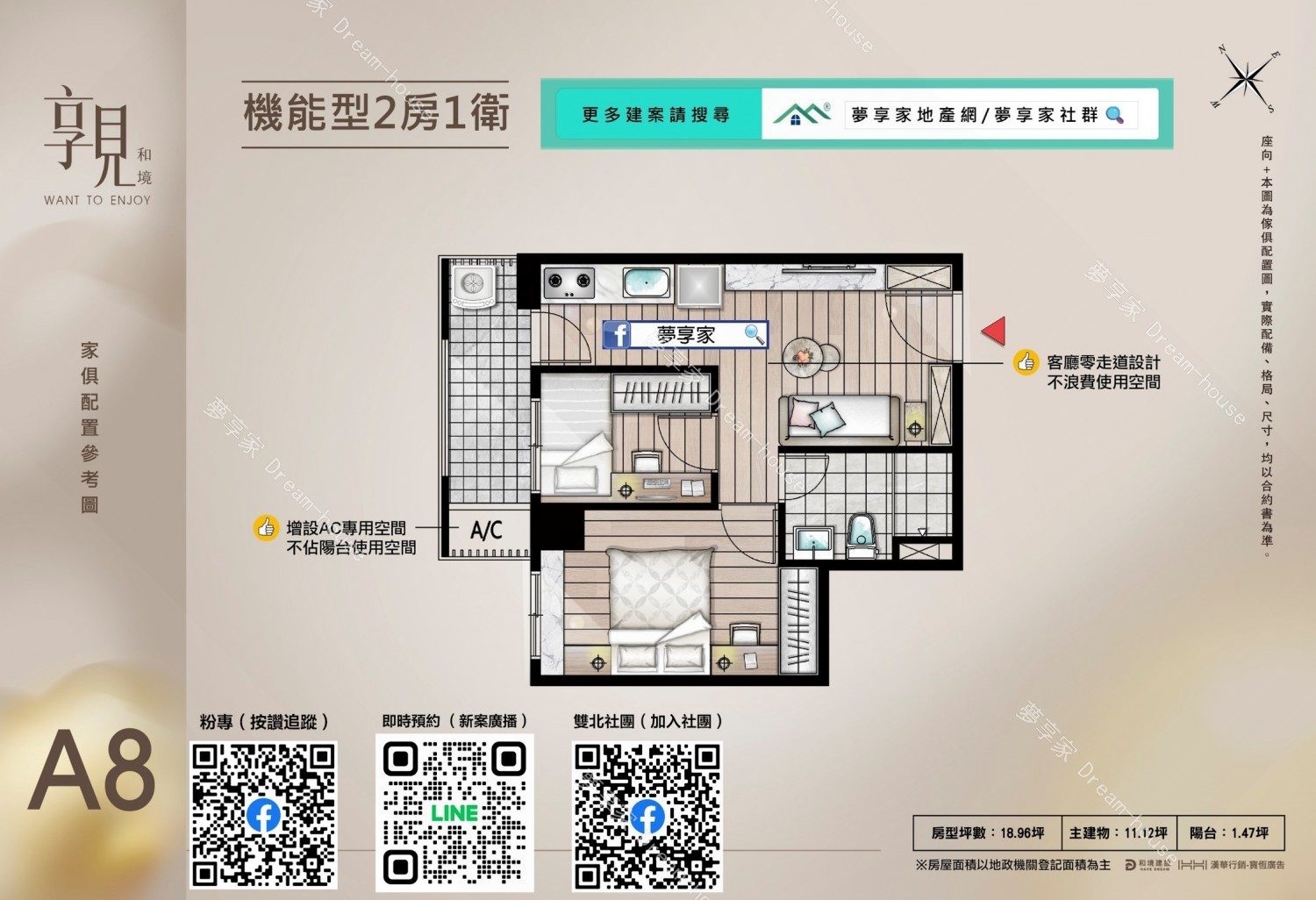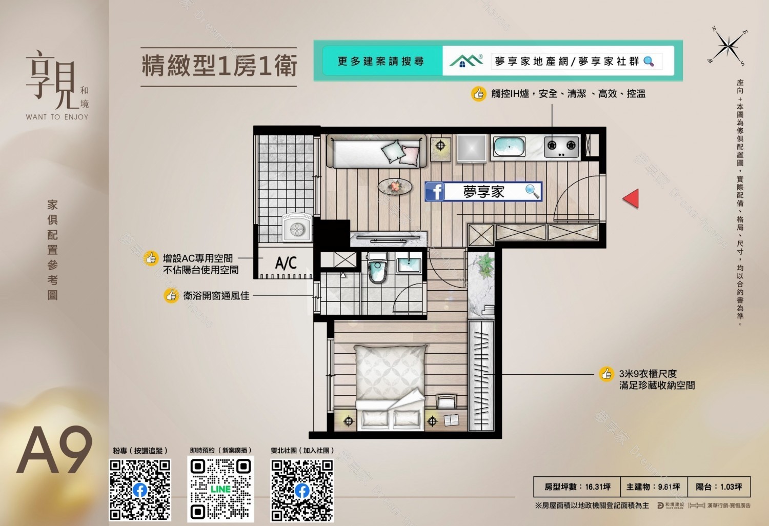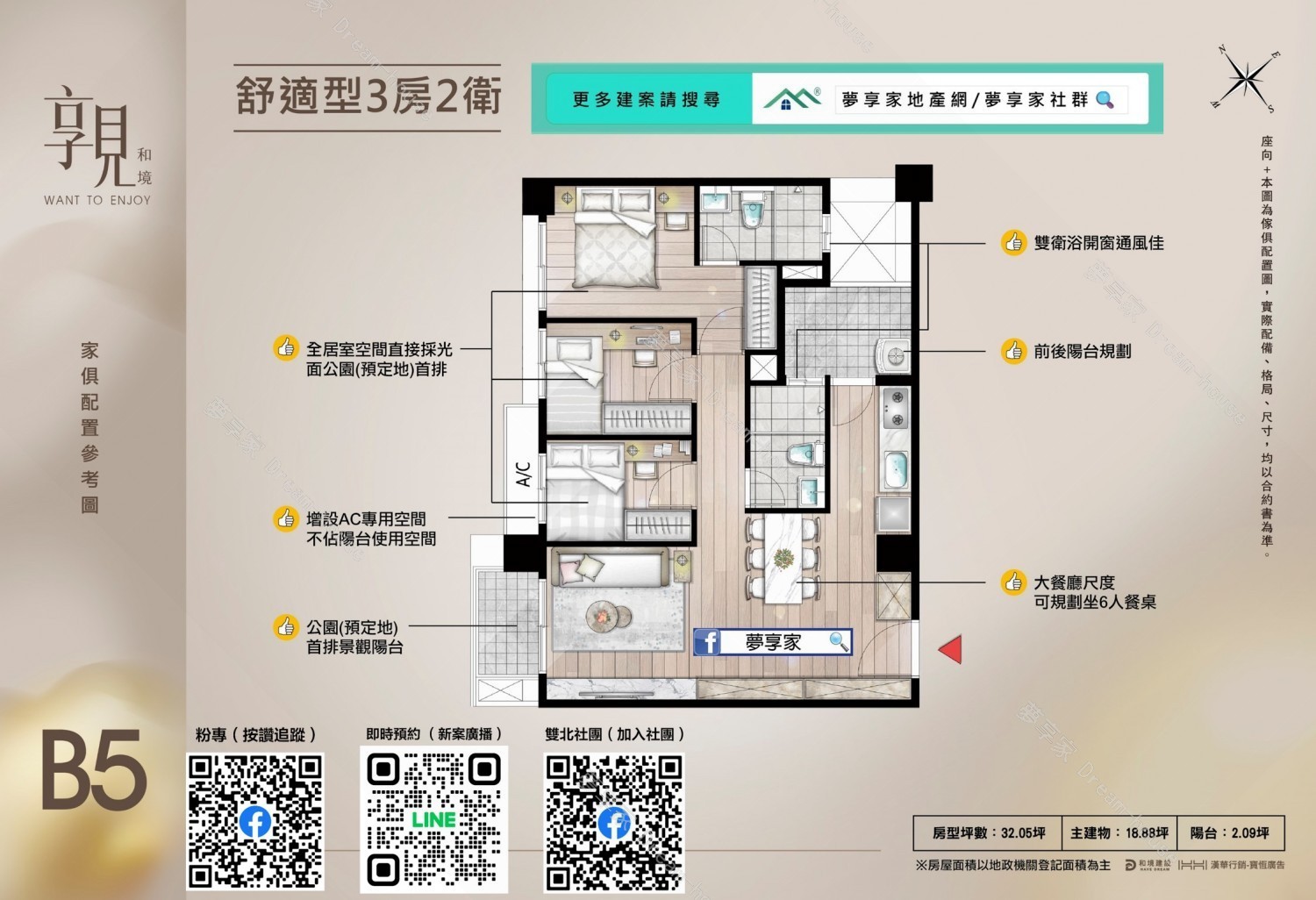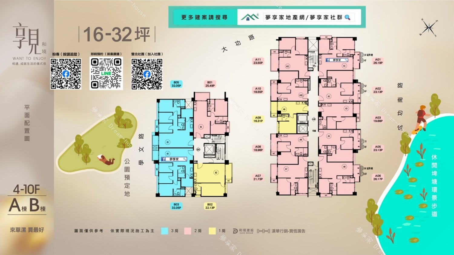 - 格局規劃 約1房16~22坪 , 2房18~26坪 , 3房32坪