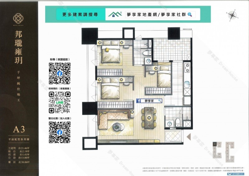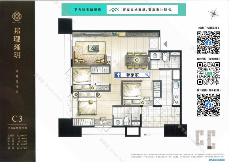 - 格局/坪數 約2房20~27坪 , 3房38坪