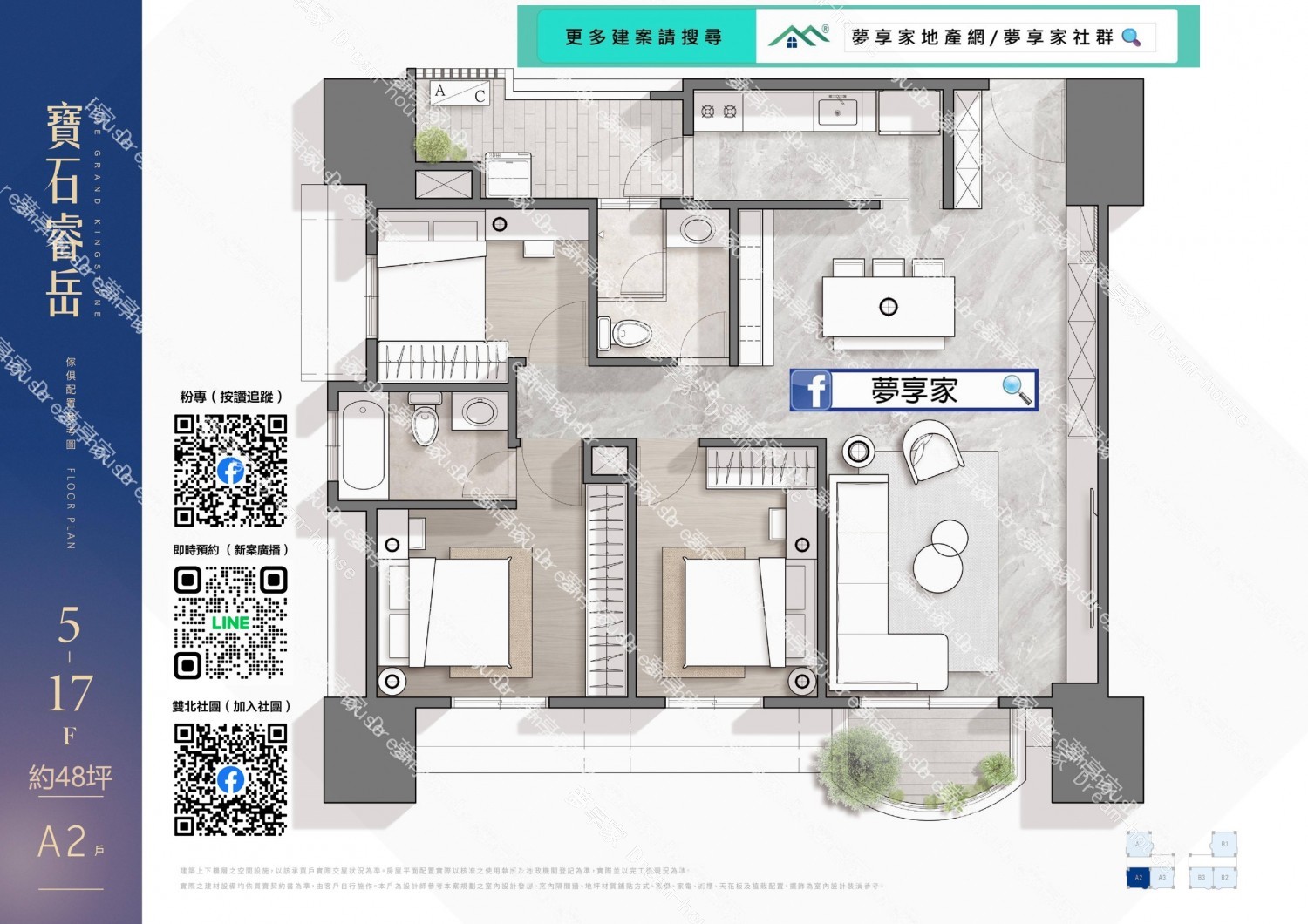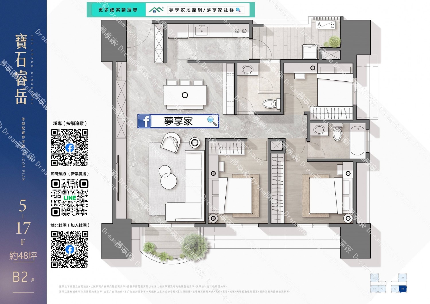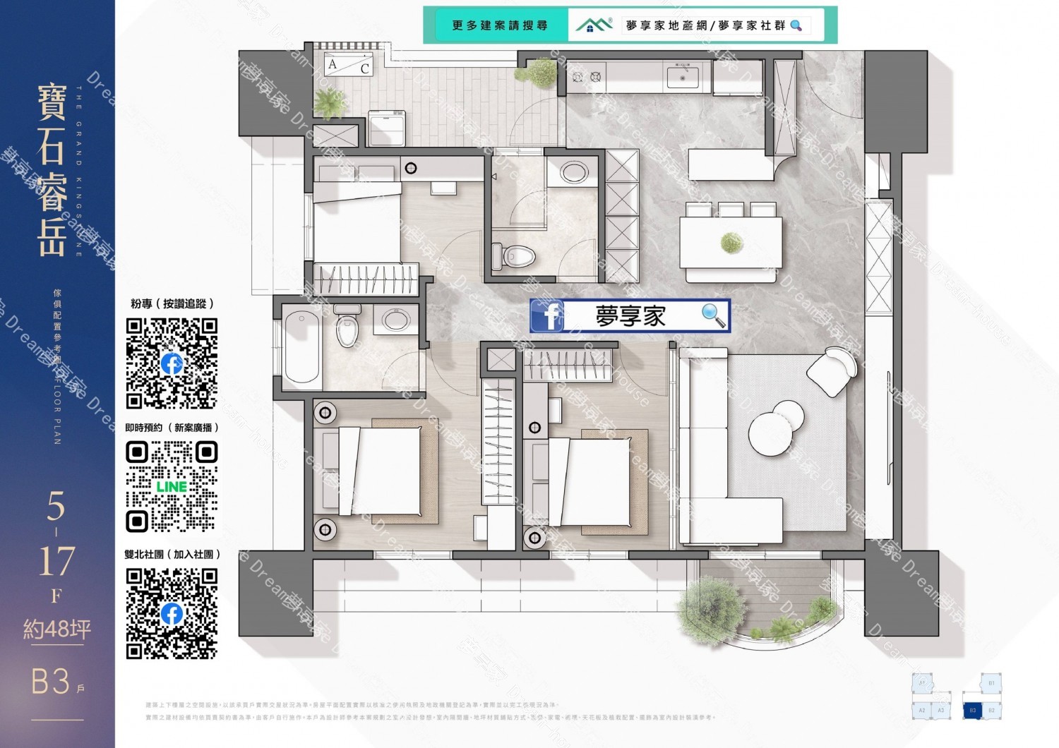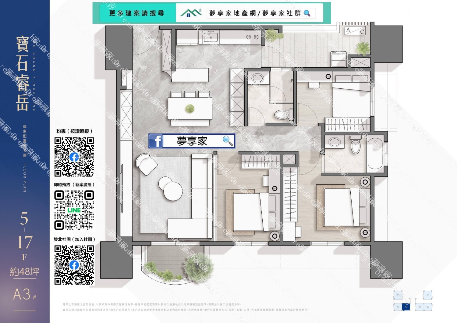 - 格局規劃 約3房48坪