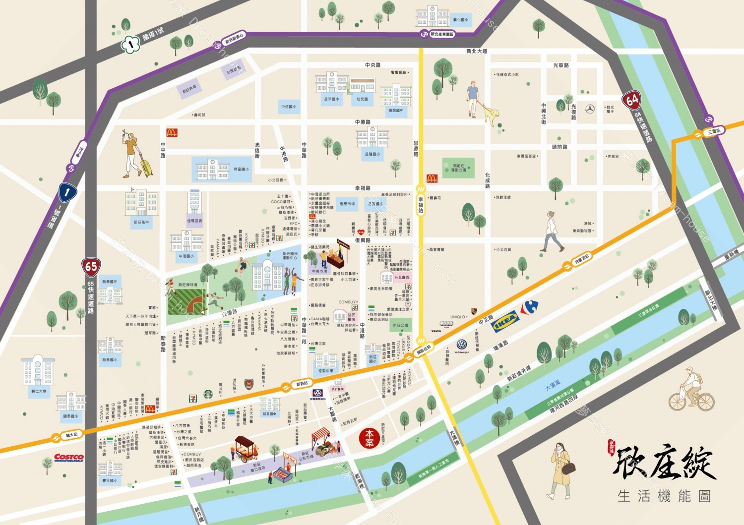 中正路商圈、新泰路商圈、新莊體育園區、新莊棒球場
