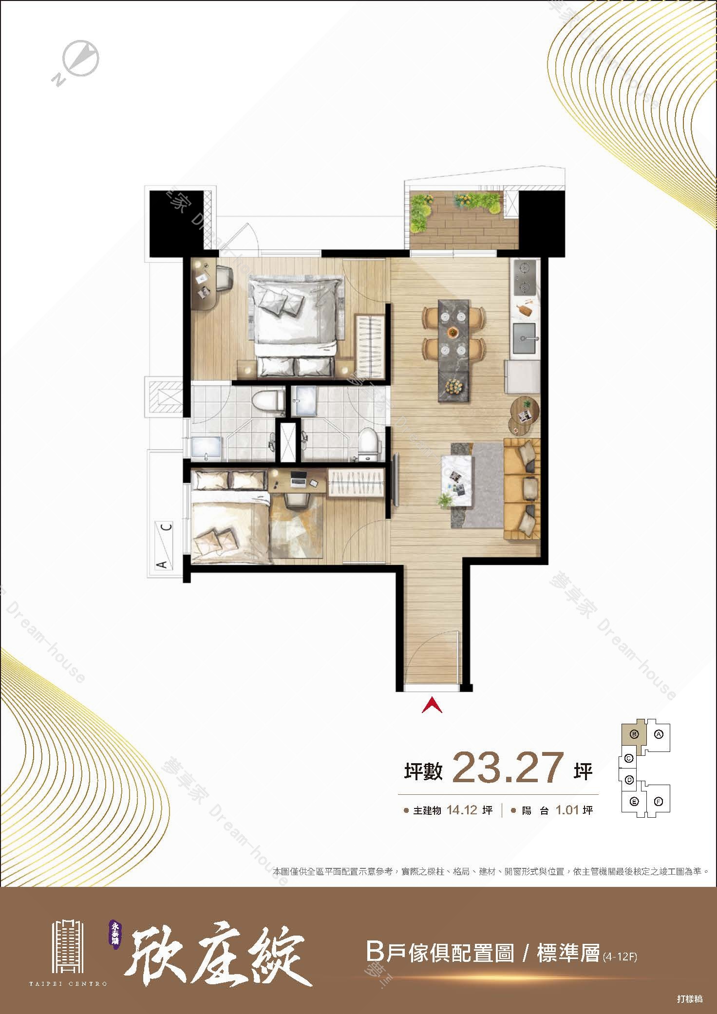 - 格局規劃 約1房13坪 , 2房23坪 , 2+1房26坪 , 3房28坪